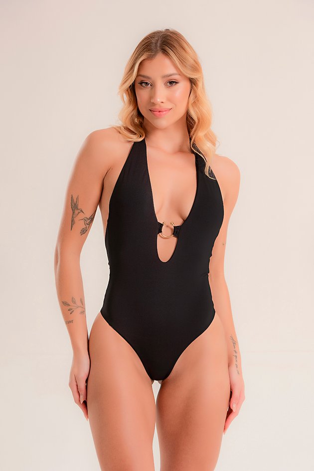 Maiô sofisticado com detalhe em argola no centro, que valoriza o design e adiciona charme ao visual. Possui bojo removível, garantindo ajuste personalizado e conforto. Ideal para criar looks de praia modernos e elegantes.
