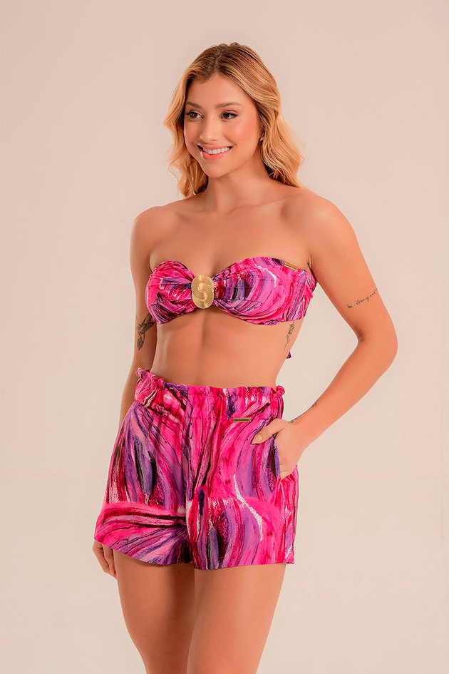 Shorts confortável com cós franzido e elástico largo, proporcionando ajuste seguro e modelagem prática. Versátil, combina facilmente com diferentes tops e blusas, ideal para looks casuais e descontraídos.