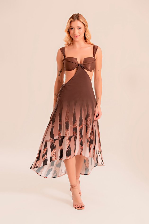 Saída Mullet Removível, que adiciona sofisticação e fluidez ao look. Versátil e prático, conta com ajuste personalizado e detalhe removível, oferecendo diferentes formas de uso. Pode ser combinado também com outros modelos de busto, ampliando as possibilidades de estilo para diversas ocasiões.